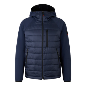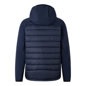 Softshell quilted jacket in a regular fit featuring high hooded stand-up collar, fixed hood with elasticated edging, long sleeves in raglan style, elasticated cuffs, closed with two-way zip and logo pendant, two side zip pockets and one chest zip pocket One
