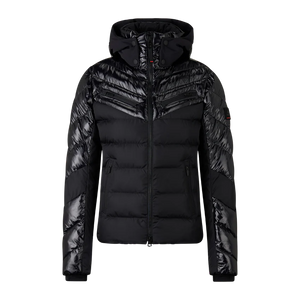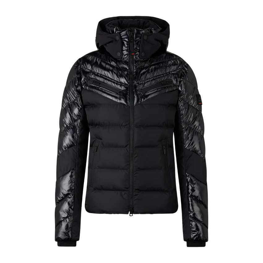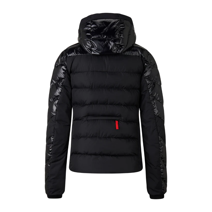 Regular fit quilted jacket with shiny nylon sections featuring padded stand-up collar, detachable hood, long sleeves, elasticated cuffs with inside thumb loop, underlaid two-way zip with B pendant, one seam-covered ski pass pocket on the sleeve Two zip pockets at