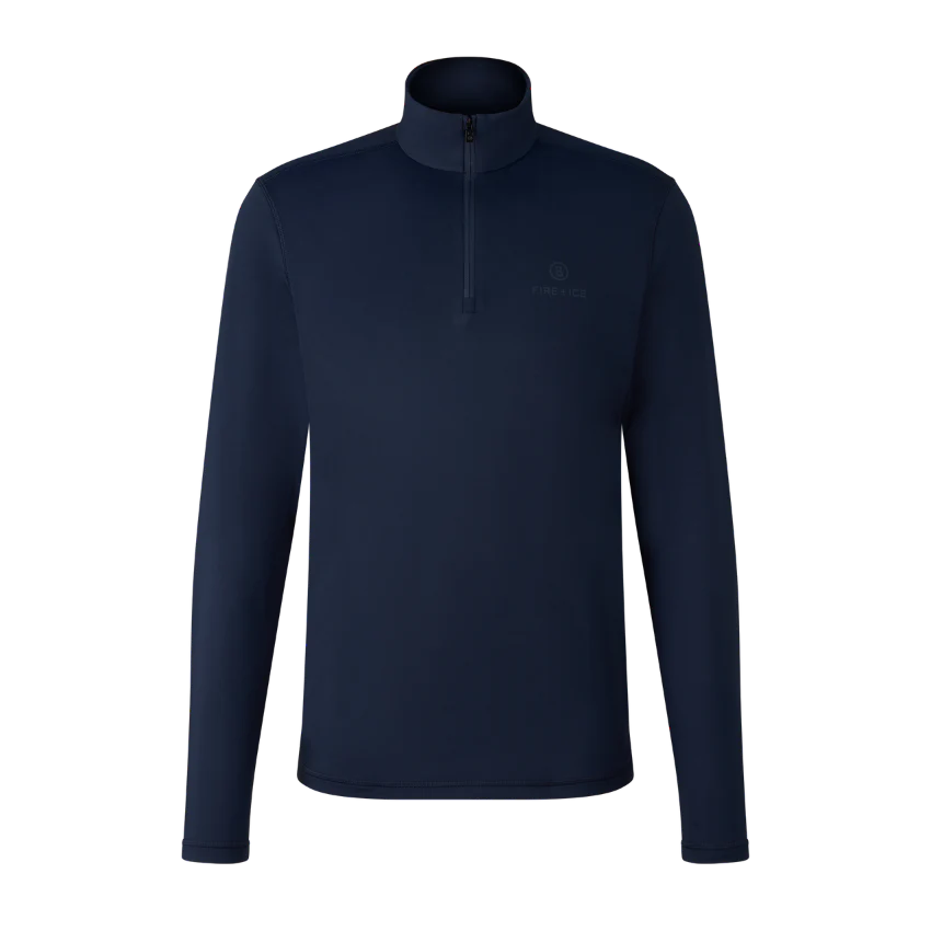 First layer in a regular fit featuring stand-up collar with short B-zipper, long sleeves, sleeve cuffs with overlock seams, tonal FIRE+ICE print on the chest and hem finish with overlock seams
