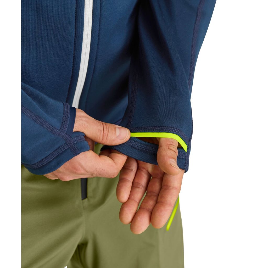 The FLEECE HOODY for men is an all-rounder with high functionality, great freedom of movement and natural climate control for cold winter days on the mountain. A special knitting process gives the tried-and-tested hoody a matt finish that emphasizes its simple, sporty look. The high-quality materials are also super sustainable: The hoody features a unique blend of soft merino wool on the inside and recycled polyester on the outside, making it particularly durable and breathable. Since MERINO FLEECE is extremely elastic, the FLEECE HOODY for men adapts to fit the body perfectly while also offering maximum freedom of movement. Soft merino wool feels pleasant on the skin and ensures comfortable climate control by naturally regulating both moisture and temperature. Two side pockets with traditional loden from the company STEINER keep your hands nice and warm, providing plenty of space for those small essentials you need within easy reach. A special processing technique is used to ensure that the thumb loops form a perfect closure, so that even here no warmth is lost. Our FLEECE HOODY for men is thus ready for all your winter activities on the mountains and in the valleys.