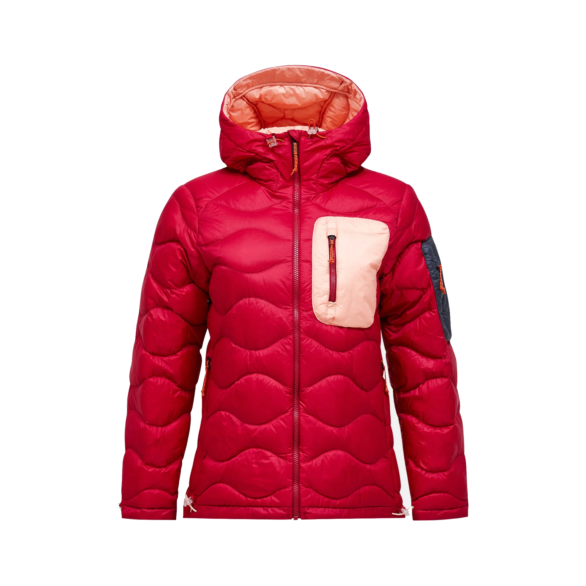 Adjustable drawcord at bottom hem, Adjustable sleeve hem with cord stopper, Chinguard, Duck down, 700 fill power, 90/10 down/feather, Fixed Hood, Full front with YKK Vislon® zipper, Hanger loop inside neck, Made without intentionally added PFAS, P-logo embroidery at sleeve, Packable into the left hand pocket, Peak Performance embroidery at chest, Quilted in our iconic Helium pattern, Responsible down standard, Sterilization Permit no. PA 9900(CN), Two-way (height and width) adjustable hood, Zippered chest pocket, Zippered hand pockets, Zippered sleeve pocket