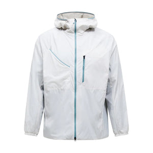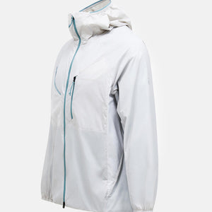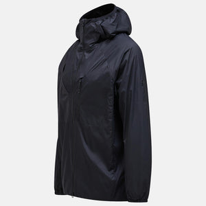 Adjustable drawcord at bottom hem, Body - 68 gr/m2, Elastic binding at hood edge, Elastic cuffs, Fixed Hood, Full front with 2-way YKK Vislon® zipper, Hood fixation with hook and loop, Lightweight, 102 gsm, 90D stretch poplin with a dry touch. Repels light rain, Lightweight, 43 gsm 20D plain weave. Windproof and repels light rain, Made without intentionally added PFAS, P-logo print at sleeve, Partially wind blocked, Peak Performance print at chest, Polartec® Alpha™, Raglan sleeves, Storage mesh pocket outside right chest, Zippered chest pocket