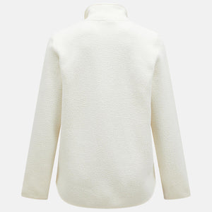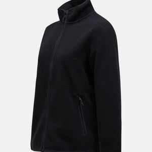 Binding along handpocket opening, Double layer collar, Elastic binding along collar, center front zipper, bottom hem and cuffs, Elastic binding at hem and cuffs, Elastic cuff with thumbhole, Full front with 2-way YKK Vislon® zipper, Made without intentionally added PFAS, Narrow flatlock covering seams, Peak Performance flag label, Soft pile with jersey back, Stand up collar, Zippered hand pockets