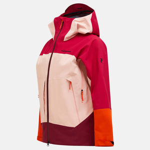 Adjustable drawcord at bottom hem, Adjustable drawcord at waist, Adjustable sleeve hem with velcro straps, Articulated sleeves, Exposed zippers are YKK AquaGuard®, Fixed Hood, Full front, 2-way YKK AquaGuard® zipper, Fully seam sealed, GORE-TEX 3L C-KNIT™, Hanger loop inside neck, Hidden RFID pass pocket, Inner mesh pocket accessible through ventilation, Laminated brim, Made without intentionally added PFAS, P-logo rubber badge at sleeve, Packable into hood, Peak Performance embroidery at chest, Plastic wire at hood brim, RECCO® Rescue System reflector, RECCO® Technology, Ski helmet compatible hood, Soft fleece lined chin protection, Two-way (height and width) adjustable hood, Zippered bellow waist pocket, Zippered front facing ventilations, Zippered inner pocket